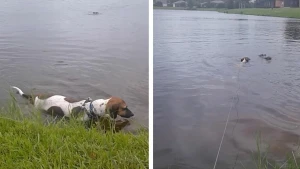 Oxu24.com xəbər verir ki, gölün ətrafında gəzən gənclər itləri də özü ilə aparıb. Göldə böyük timsah olduğunu görən it suya girib və timsaha doğru gedib.