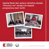Tədbirdə çıxış edən Fərid Hüseynov Kapital Bank-ın təhsilə dəstək verərməklə bazarda ixtisaslı və peşəkar kadrların yetişdirilməsinə töhfə verdiyini vurğulayıb. O qeyd edib ki, bu kadrlar arasında qızların olması olduqca qürurvericidir: “Qızların təhsilinə dəstək ölkəmiz və region üçün vacib bir mövzudur. Biz bilirik ki, bəzi regionlarda qızların təhsilinə mane olan sosial və iqtisadi baryerlər var. Kapital Bank olaraq bu çətinliklərin öhdəsindən gəlməkdə və qızlarımızın daha güclü, müstəqil fərdlər kimi formalaşmasında həyata keçirdiyiniz layihələrdə sizin yanınızda olmaqdan məmnunuq”.
