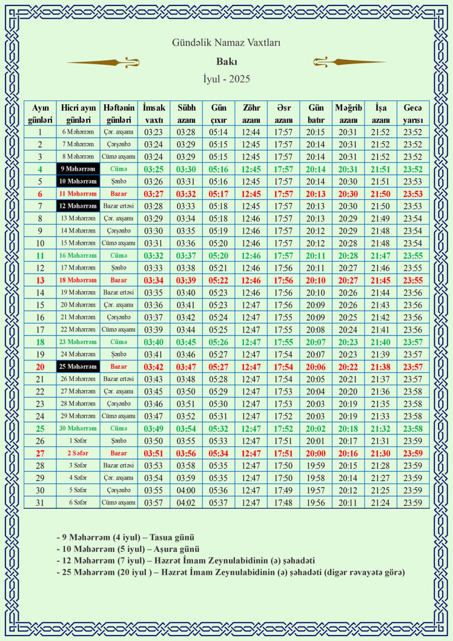 Azərbaycanda 2025-ci ildə Məhərrəm ayı iyunun 26-da başlayacaq.