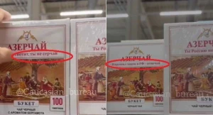 Oxu24.com xəbər verir ki, çay paketlərinin üzərində "Rusiya cavab verəcək, əsəbləşməyin", "Rusiya Federasiyasında qanunu pozdunuz, cavab verin" kimi cümlələr yer alıb.