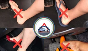 Nazik və yüksək dabanlı, topuqlu, arxası açıq, sürüşkən və elastik altlıqlı ayaqqabılar pedallar üzərində nəzarəti çətinləşdirir, ayağın sürüşməsinə və pedalın vaxtında, düzgün sıxılmamasına səbəb olur ki, bu da qəza riskini artırır. Bu kimi hallar daha çox xanım sürücülər arasında müşahidə olunur.