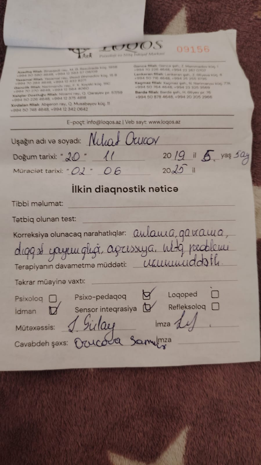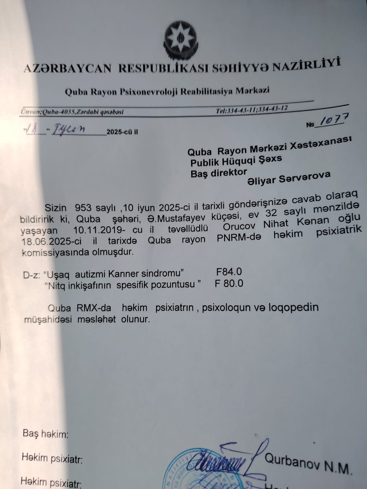 2019-cu il təvəllüdlü Nihat uzunmüddətli loqoped müalicəsinə ehtiyac duyur. Onun anası Samirə xanım təkbaşına işləyərək balalarına baxır və oğlunun müalicə xərclərini qarşılamaqda çətinlik çəkir. Nihat yaşıdlarından geri qalır, heç bir şeyə reaksiya vermir və hər bir kurs loqoped müalicəsi 300 manat təşkil edir.