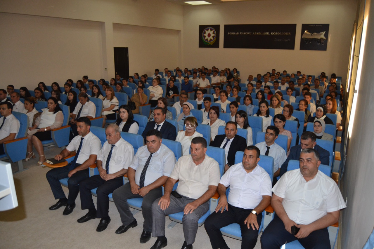 Oxu24.com xəbər verir ki, görüşdə Zərdab Rayon İcra Hakimiyyətinin başçısı Mərdan Camalzadə, idarə, müəssisə və təşkilatların nümayəndələri, məktəb direktorları, müəllimlər, valideynlər, tələbələr iştirak edib.