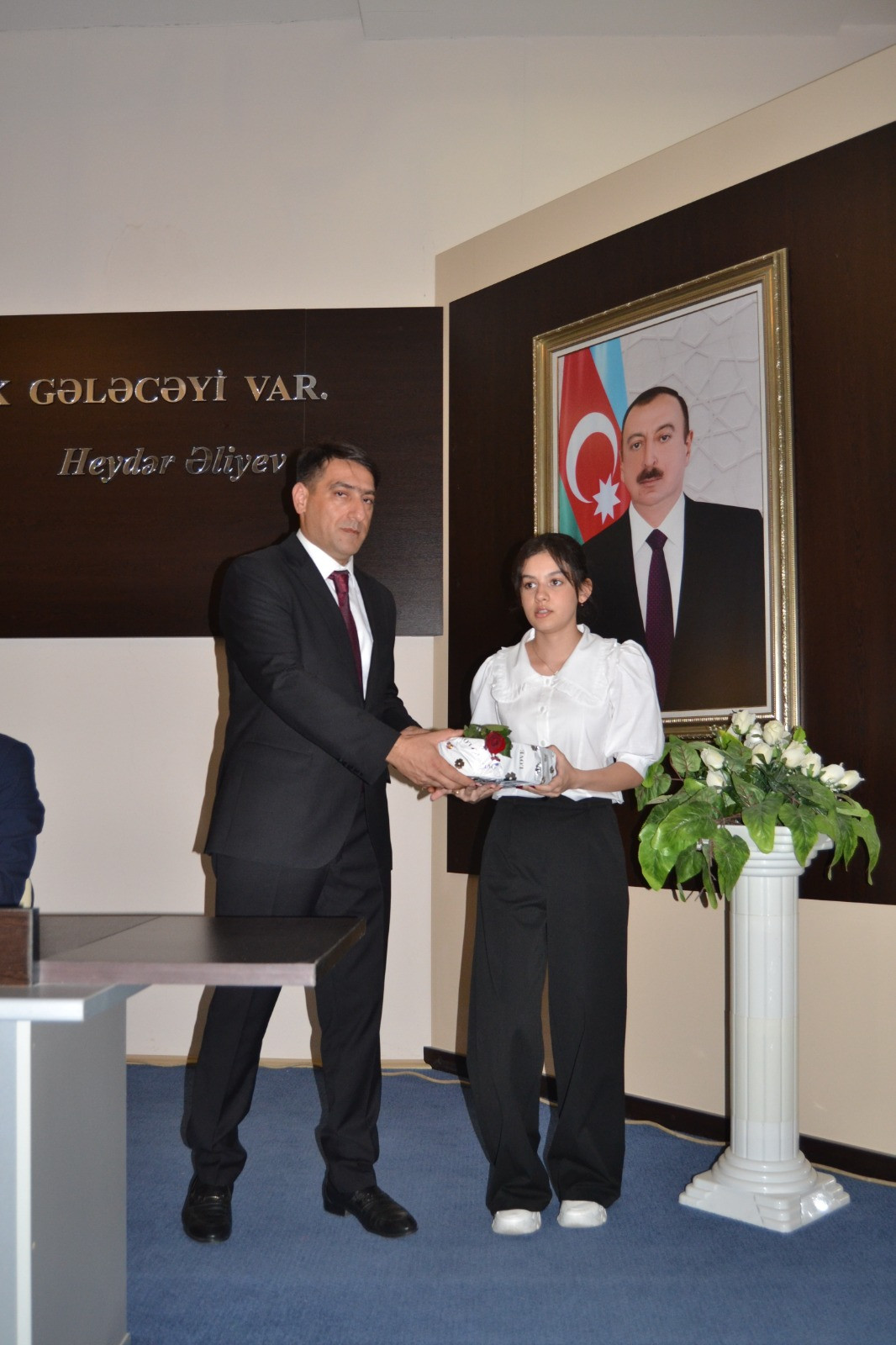 Sonda qəbul imtahanlarında yüksək nəticə əldə etmiş məzunlara Rayon İcra Hakimiyyəti tərəfindən hədiyyələr təqdim olunub, həmçinin rayonun təhsil həyatında səmərəli fəaliyyəti ilə fərqlənən şəxslər Fəxri fərmanlarla təltif ediliblər.