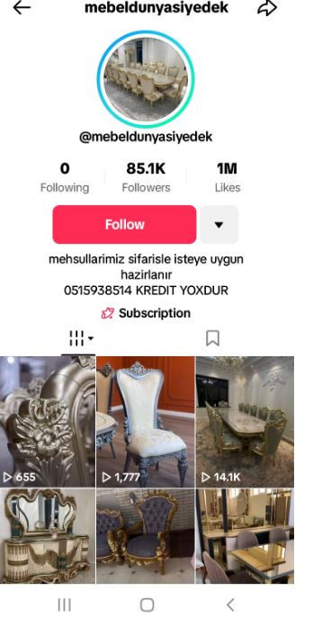 Bir daha xatırladaq ki,xüsusi ilə "tiktok" platformasında bu kimi hallara geniş rast gəlinir. Belə ki, "Ada Fabrik - mebeldunyasıyedek" profilində mebellə bağlı müxtəlif cür elanlar paylaşılır."Tiktok" (Bu linkdə) və "İnstagram" (Bu linkədə)platformalarında paylaşılan elanlarda vətəndaşlara müxtəlif cür mebellər təklif olunur. Bu üsulla vətəndaşları cəlb edən elan sahibləri pulları öncədən aldıqdan sonra yoxa çıxırlar. Vətəndaşların nömrələrini "qara siyahı"ya salan səhifə adminləri bu yolla növbəti qurbanlarını tora salırlar.