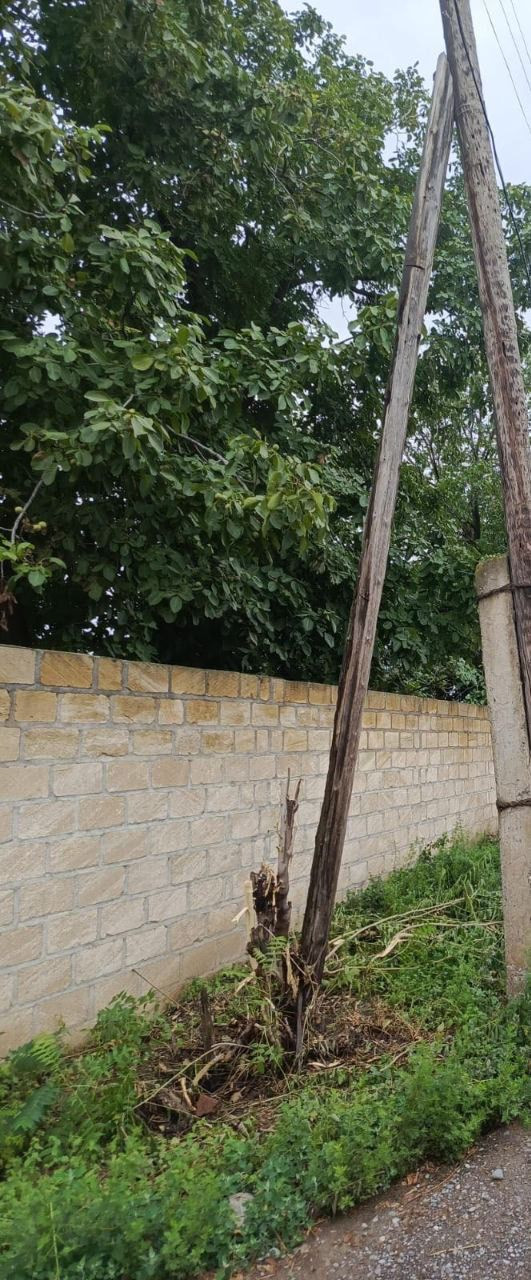 Ani güclü külək və ya xoşagəlməz hadisə təsirindən dirək hər an aşa və bədbəxt hadisə baş verə bilər. “Azərişıq” ASC-yə müraciət edirik, müraciətimizə baxan olmur.”
