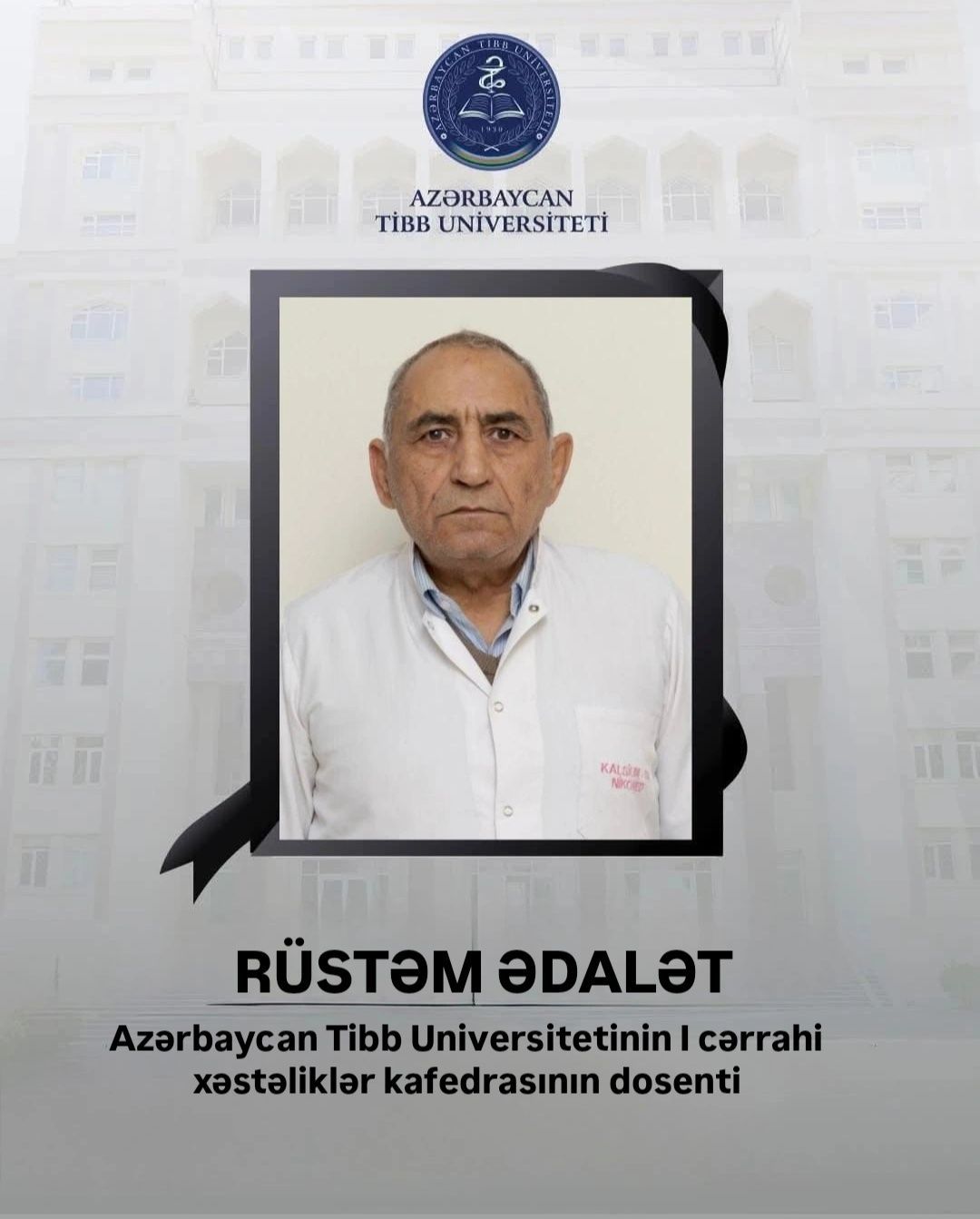 Tanınmış həkim, tibb üzrə fəlsəfə doktoru, Tibb Universitetinin dosenti Ədalət Rüstəm vəfat edib.