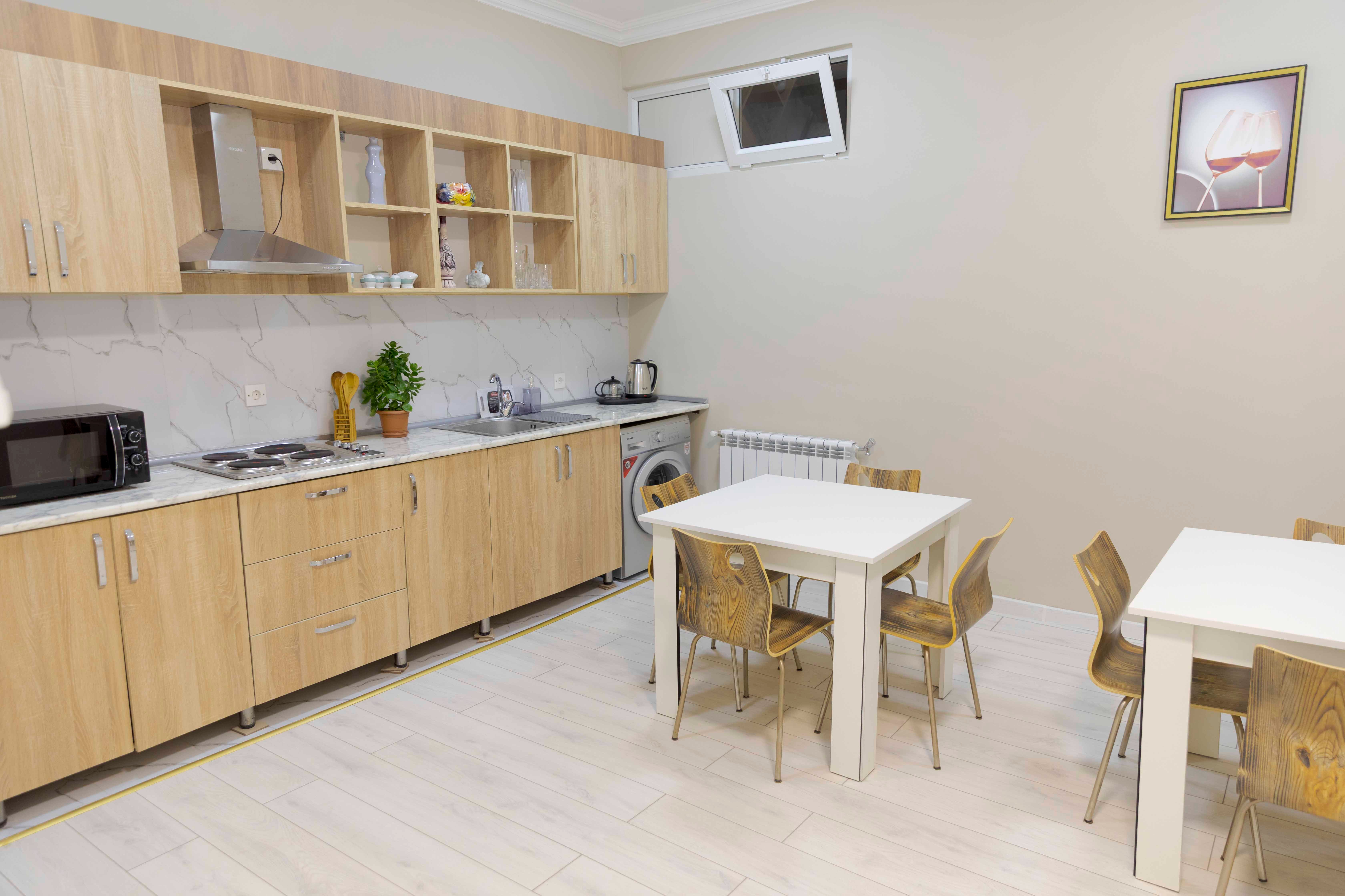 Qonaq evi müxtəlif ölçülü otaqlar, tam təchiz olunmuş mətbəx, sürətli Wi-Fi və hər otaqda ayrıca sanuzel ilə təmin olunub. Məqsəd burada olan hər kəsin komfortlu və rahat şəraitdə qalmasını təmin etməkdir.