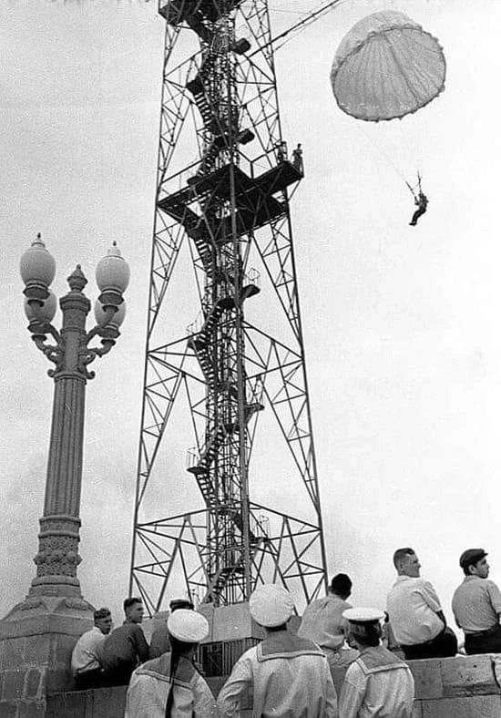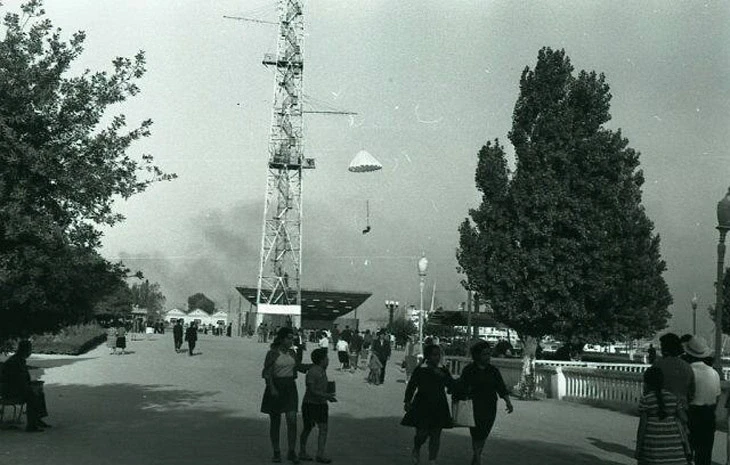Oxu24.com xəbər verir ki,mütəxəssislərin və tarixi mənbələrin məlumatına görə, bu konstruksiya XX əsrin ortalarında paraşüt idmanı üçün nəzərdə tutulmuş xüsusi bir qüllə kimi inşa edilib. 1936-cı ildə istifadəyə verilən tikili o dövrdə gənclərin paraşütlə tullanma təcrübəsi qazandığı nadir idman obyektlərindən biri olub.