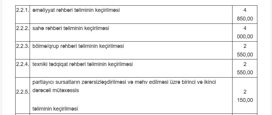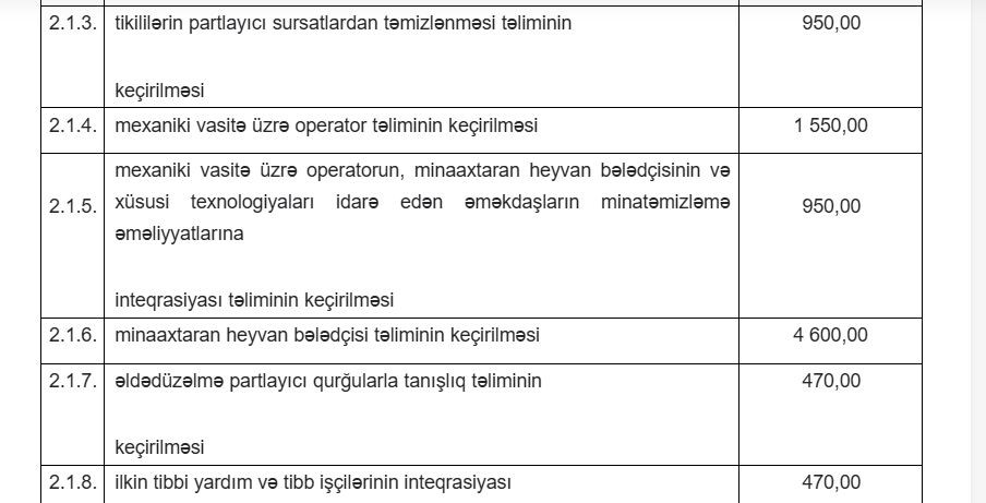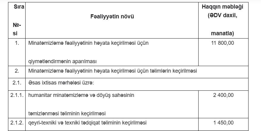 Minatəmizləmə fəaliyyətinin həyata keçirilməsi üçün qiymətləndirmənin aparılmasına və təlimlərin keçirilməsinə görə haqqın məbləği