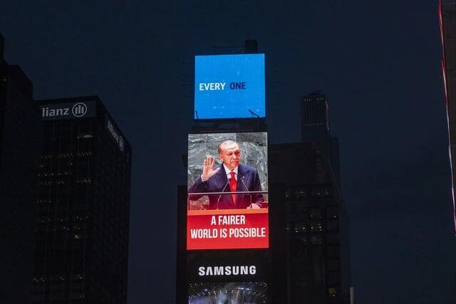 Türkiyə Prezidenti Rəcəb Tayyib Ərdoğanın tez-tez təkrar etdiyi "Dünya beşdən böyükdür" sözü Nyu-York şəhərinin məşhur "Tayms" meydanında ekranlarda əks olunub.