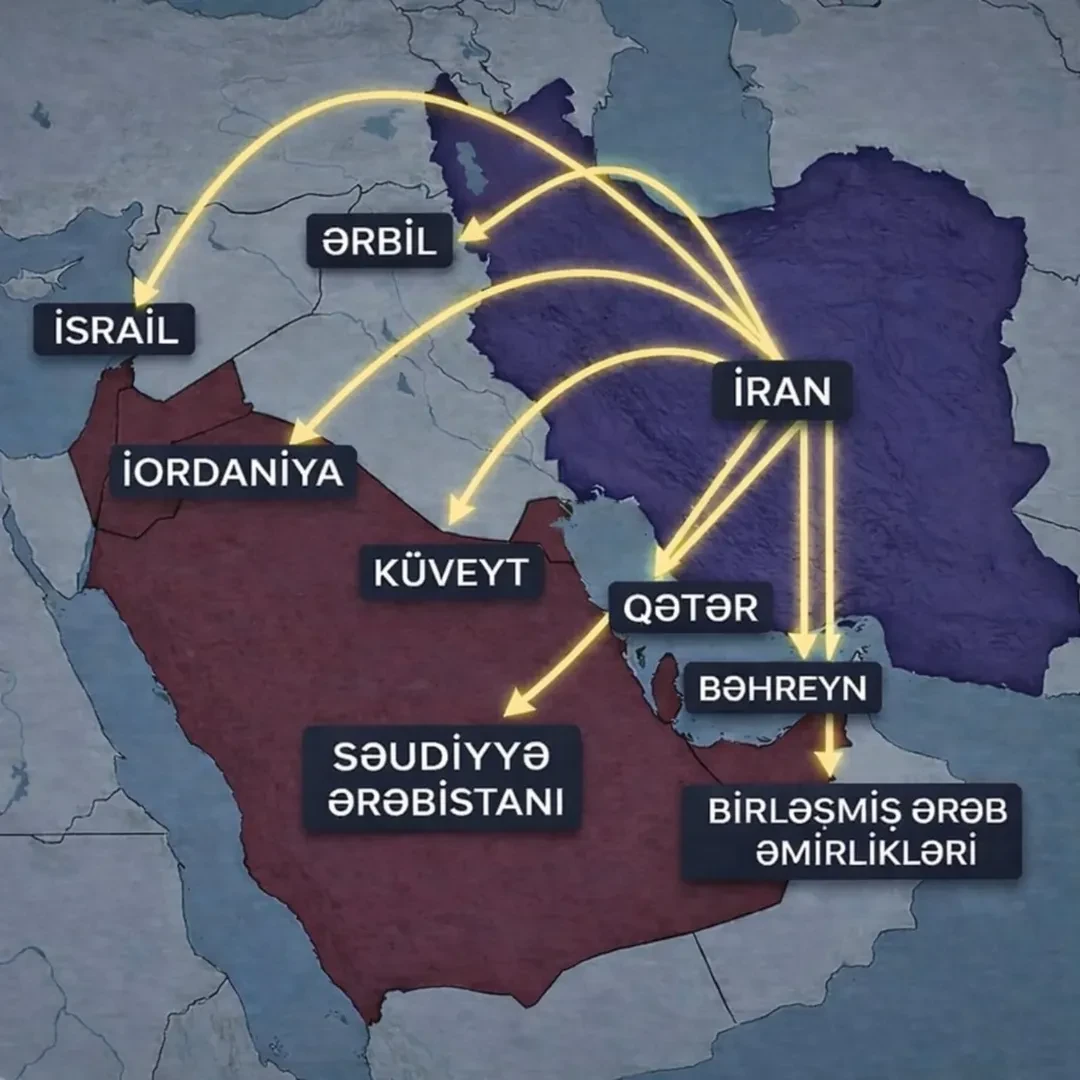 Fotodan da göründüyü kimi,İran tərəfindən hücuma məruz qalan ölkələrin əksəriyyəti İsrail xaric,ərəb dövlətləridir. İran bu ölkələrə hücum etmək məqsədinin qeyd olunan ərazilərdə yerləşən ABŞ hərbi bazalarının sıradan çıxarılması olduğunu bildirir.