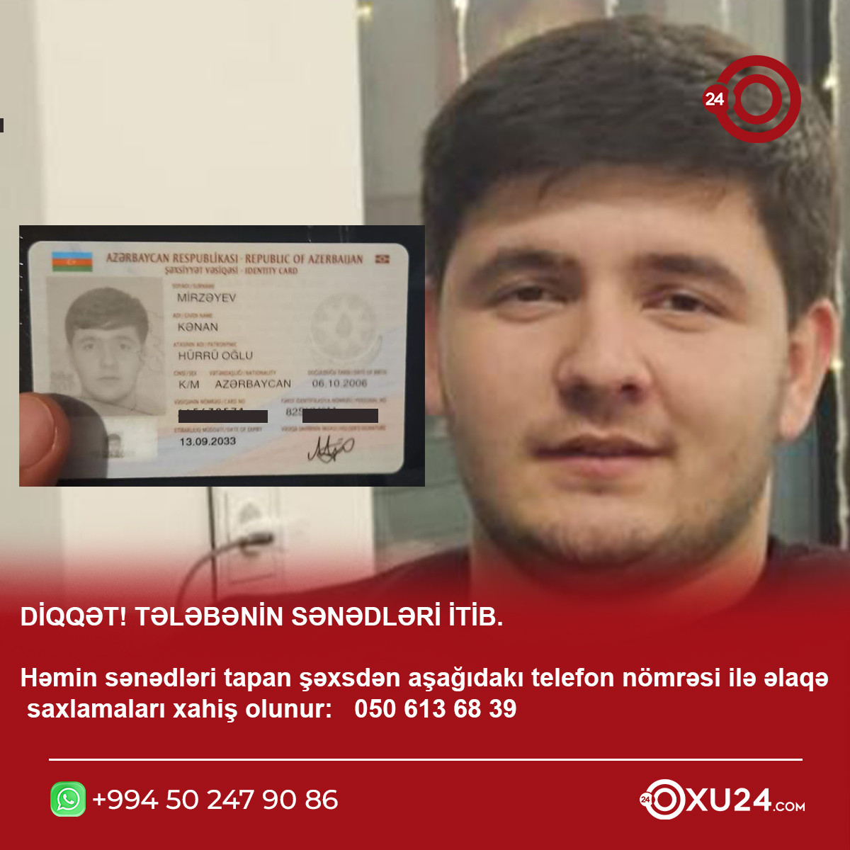 Həmin sənədləri tapan şəxsdən aşağıdakı telefon nömrəsi ilə əlaqə saxlamaları xahiş olunur: 050 613 68 39