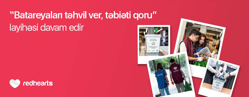 İstifadəyə yararsız elektrik batareyalarının düzgün çeşidlənməsi və ekoloji cəhətdən təhlükəsiz şəkildə zərərsizləşdirilməsi məqsədilə Ekologiya və Təbii Sərvətlər Nazirliyi ilə Qırmızı Ürəklər Fondu tərəfindən həyata keçirilən “Batareyaları təhvil ver, təbiəti qoru” layihəsi uğurla davam etdirilir.