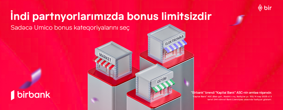 1 avqust 2025-ci il tarixindən etibarən Birbank kartları üzrə bonus mexanizmi yenilənib. Yeni şərtlər çərçivəsində istifadəçilər partnyor ticarət və xidmət məntəqələrində etdikləri ödənişlərə görə artıq keşbek deyil, limitsiz Umico bonusları qazanırlar. Bu dəyişiklik daha çox qazanc imkanı yaradır və müştəri təcrübəsini daha da zənginləşdirir.