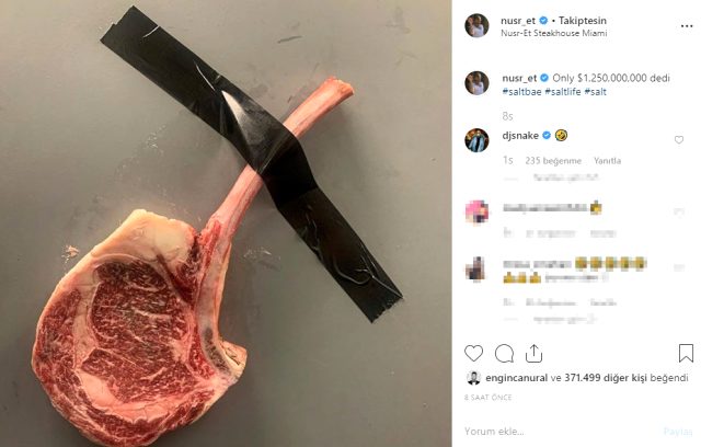 Türkiyəli fenomen qəssab Nusret Gökçe “Instagram” paylaşımı ilə gündəmə gəlib.