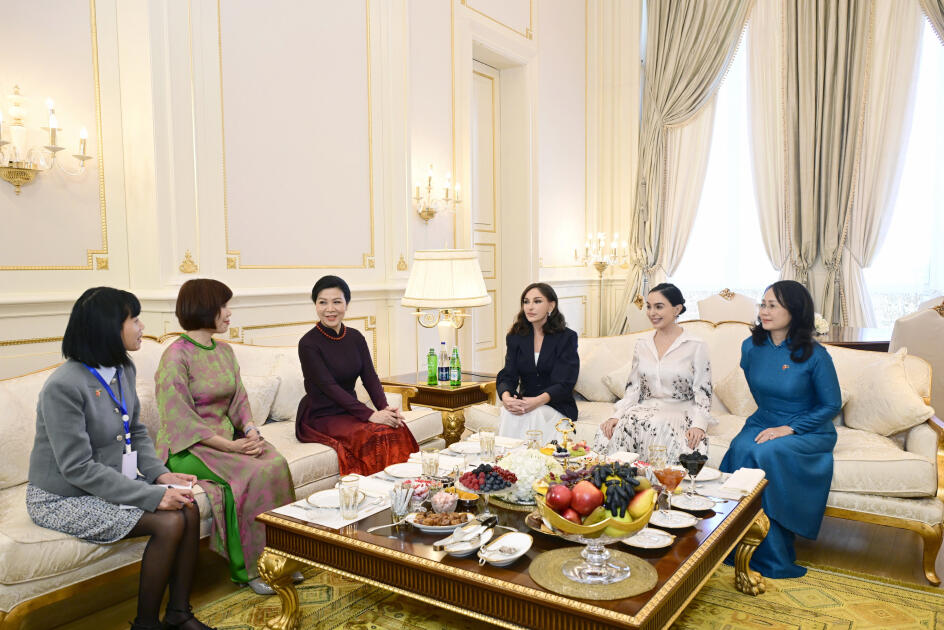 Oxu24.com bildirir ki, mayın 7-də Azərbaycan Respublikasının birinci xanımı Mehriban Əliyevanın Vyetnam Sosialist Respublikası Kommunist Partiyasının Mərkəzi Komitəsinin Baş katibinin xanımı No Fon Li ilə görüşü olub.