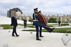 Pakistan Milli Assambleyasının sədri Zəfər abidəsinin önünə əklil qoydu.