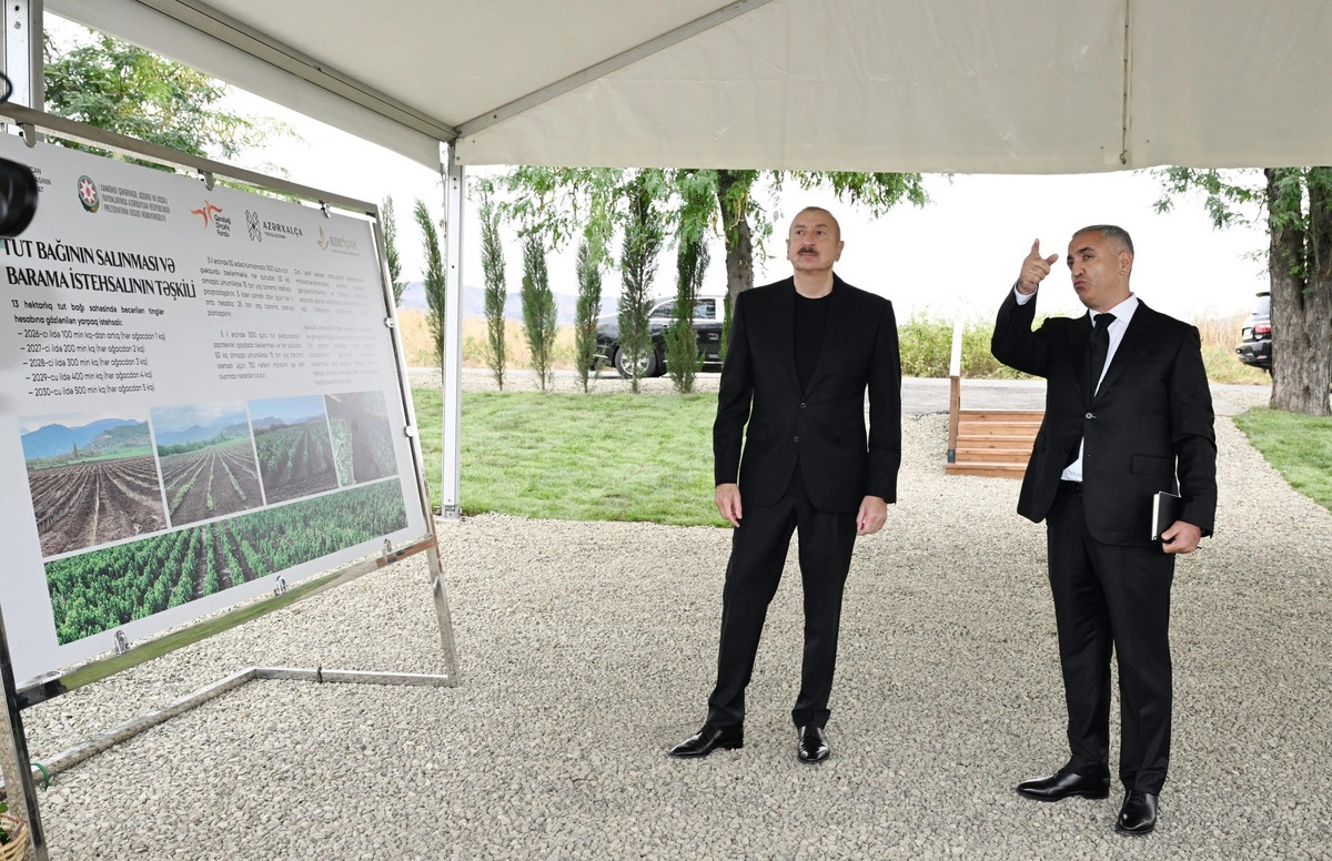 Azərbaycan Prezidenti İlham Əliyev sentyabrın 15-də Xocalı rayonunun Daşbulaq kəndində 13 hektar sahədə salınmış tut bağında olub.