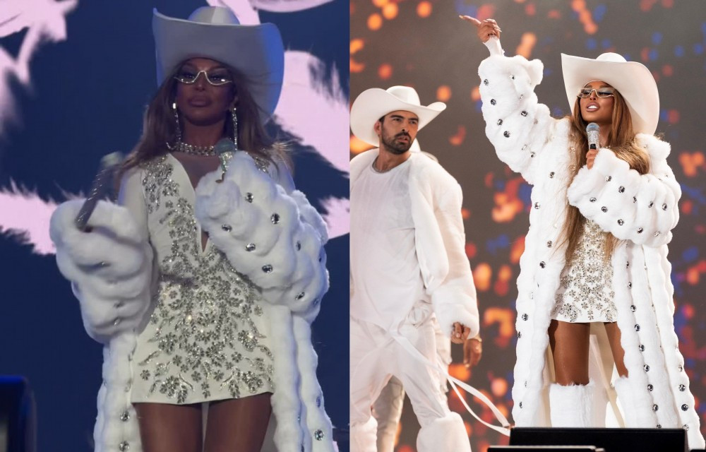 Oxu24.com xəbər verir ki, Pop kraliça gecədə iki geyimdən istifadə edib. Hər iki geyim modelyer Rüfət İsmayıla aiddir.