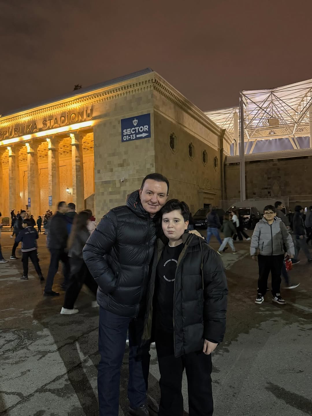Həmin oyundan öncə müğənni stadionun önündən oğlu ilə görüntülərini paylaşıb.