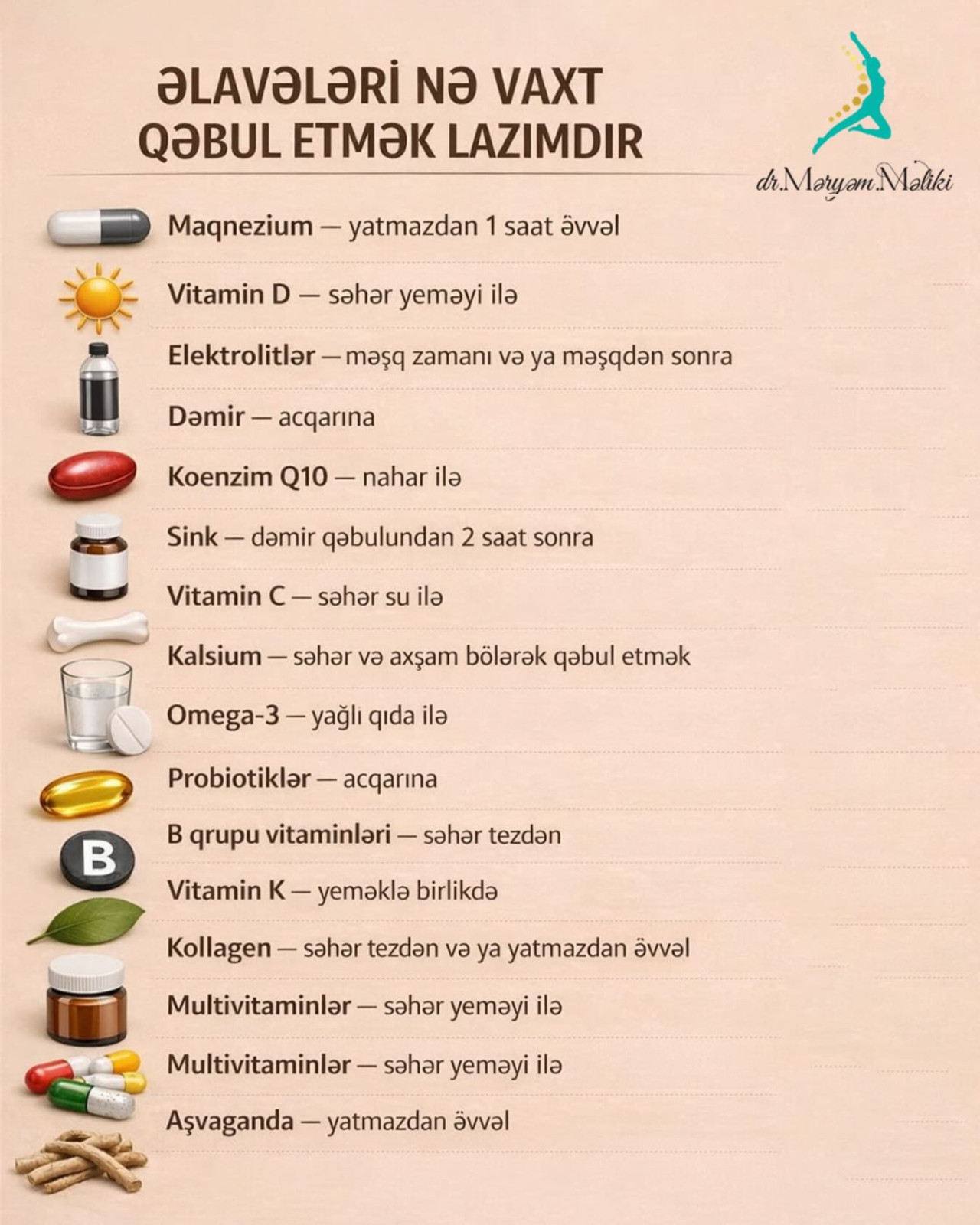 Bu barədə Oxu24.com-a endokrinoloq - Diyetoloq Məryam Məlikli bildirib ki,hətta ən yaxşı qida əlavələri belə, onları “necə gəldi” qəbul etsəniz, tam təsir göstərməyə bilər.