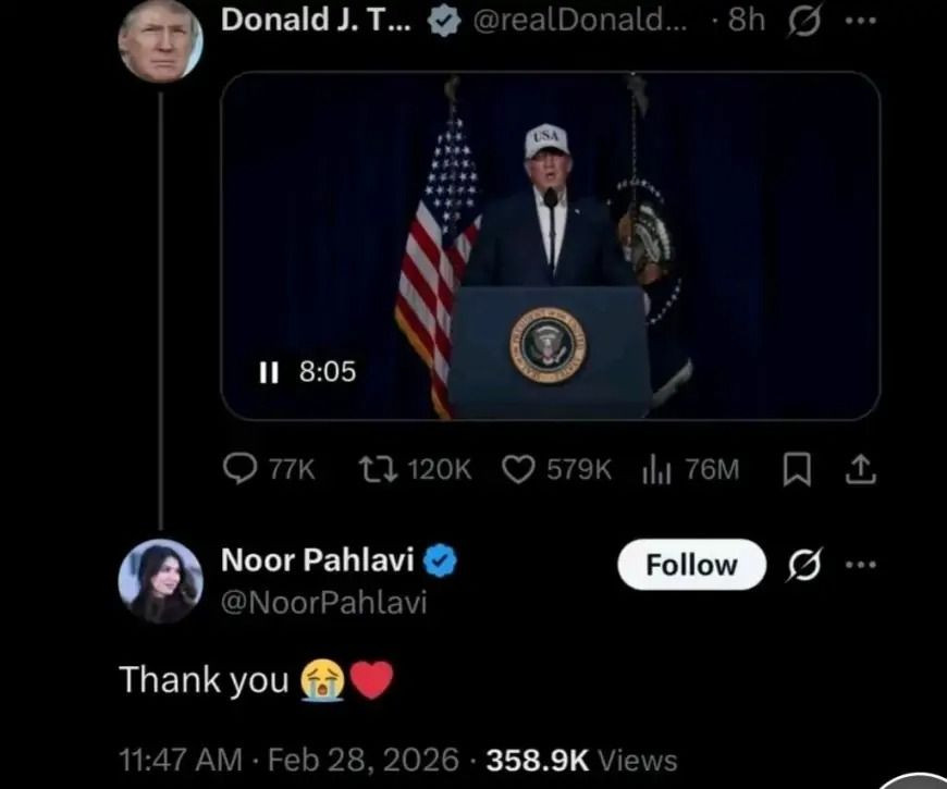 Oxu24.com xəbər verir ki, Rza Pəhləvinin qızı Nur ABŞ Prezidenti Donald Trampa İranı vurduğuna görə təşəkkür edib.