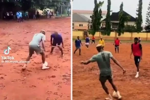 Transfer almaqda çətinlik çəkən "Qalatasaray"ın ulduz hücumçusu Viktor Osimhen bu dəfə ölkəsində gil meydançada futbol oynayarkən görüntülənib.