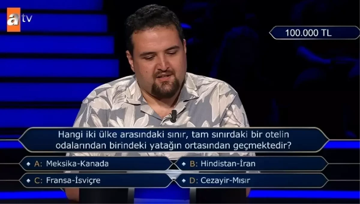 Oxu24.com xəbər verir ki, Oktay Kaynarcanın aparıcılığı ilə keçirilən viktorinada "Hansı iki ölkənin sərhədi düz sərhəddəki otel otağından, çarpayının ortasından keçir?" sualı böyük marağa səbəb olub.