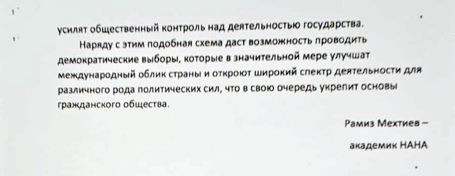 Также следует отметить, что реализовать подобный план было не в силах ни самого Рамиза Мехтиева, ни тех кругов, с которыми он пытался установить связь. Попытка осуществить замысел только демонстрирует его истинную лицемерную сущность.