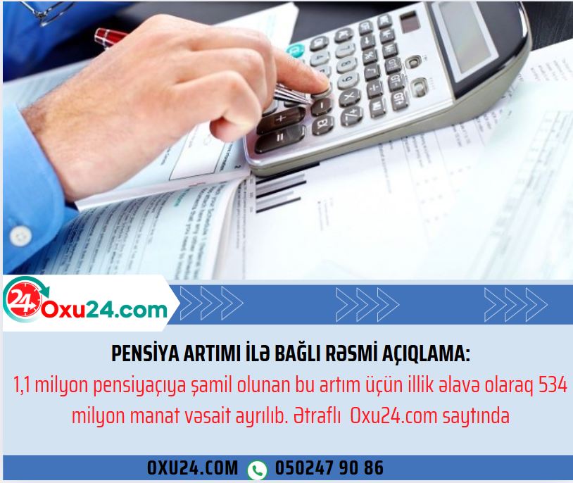1,1 milyon pensiyaçıya şamil olunan bu artım üçün illik əlavə olaraq 534 milyon manat vəsait ayrılıb.