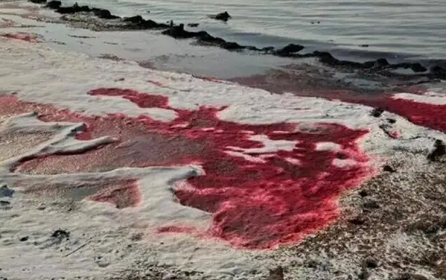 Xəzər dənizinin Qazaxıstan sahillərində suyun qırmızı rəngə boyanması yerli sakinlərin diqqətini çəkib.