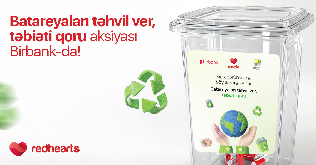 Ekologiya və Təbii Sərvətlər Nazirliyi və Qırmızı Ürəklər Fondu tərəfindən start verilən “Batareyaları təhvil ver, təbiəti qoru” layihəsinə Birbank da qoşulub. Layihə çərçivəsində Birbank-ın baş ofisində 30 ədəd, filiallarında isə 119 ədəd xüsusi qutu yerləşdirilib. Artıq bankın müştəriləri və əməkdaşları istifadəyə yararsız elektrik batareyalarını bu qutulara atmaqla təhvil verə bilərlər.