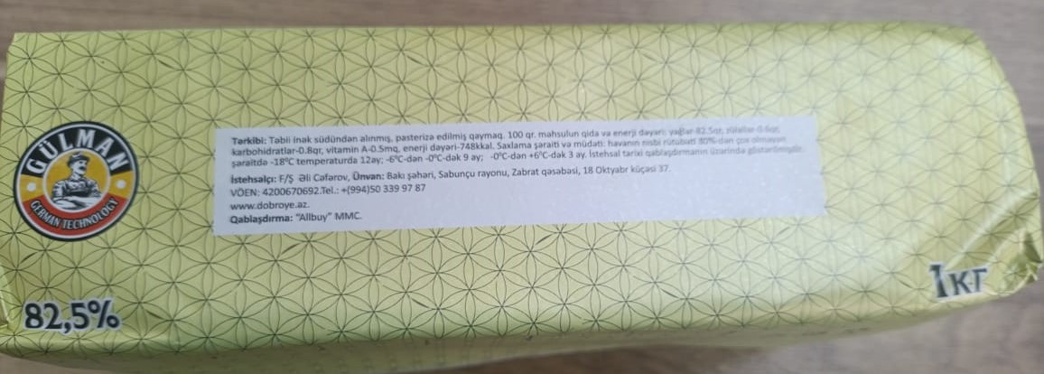 Bildirilib ki, fiziki şəxs Cəfərov Əli Telman oğlunun istehsal etdiyi kərə yağlarından götürülmüş nümunələrin müayinəsi nəticəsində məhsul partiyalarında bitki sterinləri (Kampesterin, Stiqmasterin, Beta-sitosterin), eyni zamanda normativ sənədlə bu növ məhsulun tərkibində istifadəsinə icazə verilməyən qida əlavələri (Sorbin və Benzoy turşuları) aşkarlanıb.