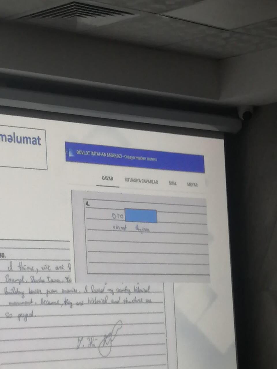 DİM nümayəndəsi bildirib ki, imtahanlarda yazılı cavab tələb edən tapşırıqlara bəzi abituriyentlər öz mobil nömrələrini və ya "hörmət edəcəm" qeydlərini yazır:
