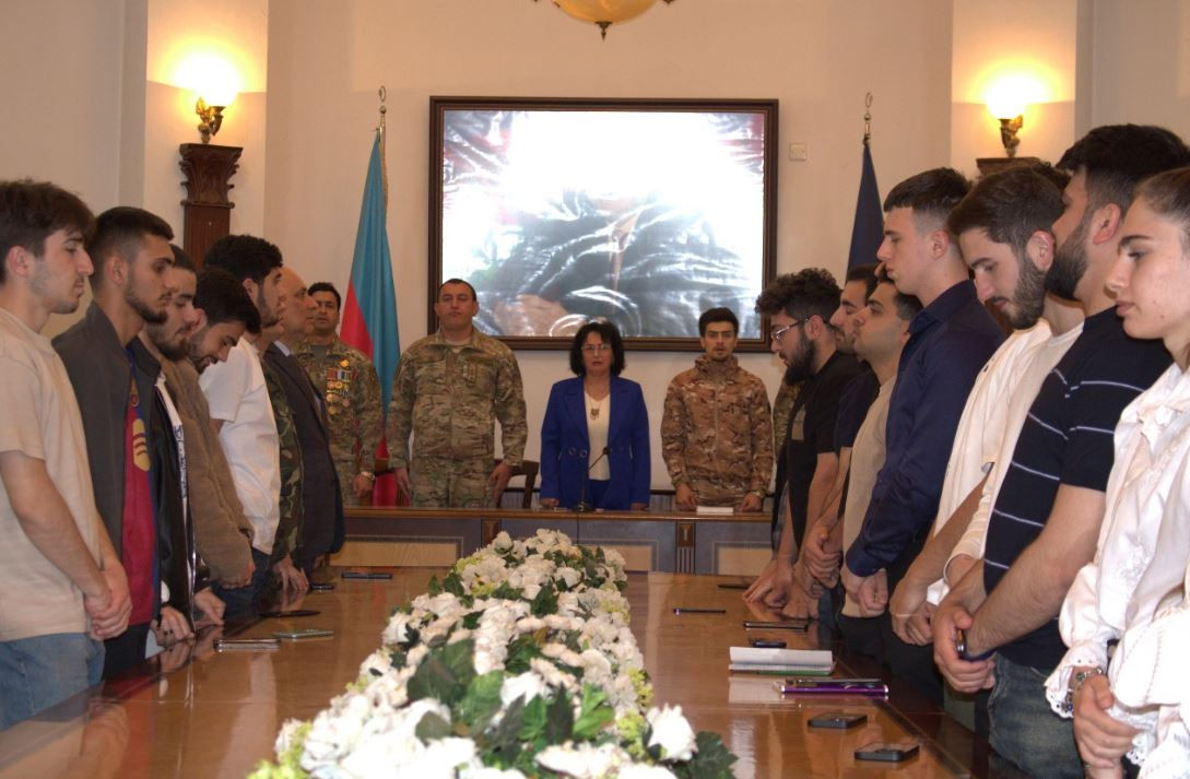 Universitetin Türk Dünyası İqtisad Fakültəsinin müəllimi Nəriman Məmmədov Aprel döyüşlərinin əhəmiyyətindən və eyni zamanda universitetin vətən uğrunda şəhid olan tələbələrindən danışdı. Qeyd etdi ki, Qarabağ döyüşlərində universitetin 48 tələbəsi şəhid olub.