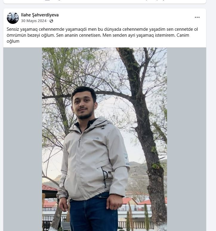 "Sənsiz yaşamaq cəhənnəmdə yaşamaqdı, mən bu dünyada cəhənnəmdə yaşadım, sən cənnətdə ol, ömrümün bəzəyi oğlum. Sən ananın cənnətisən. Mən səndən ayri yaşamaq istəmirəm, canım oğlum..", - deyə o, oğlunun fotosunu paylaşaraq yazıb.