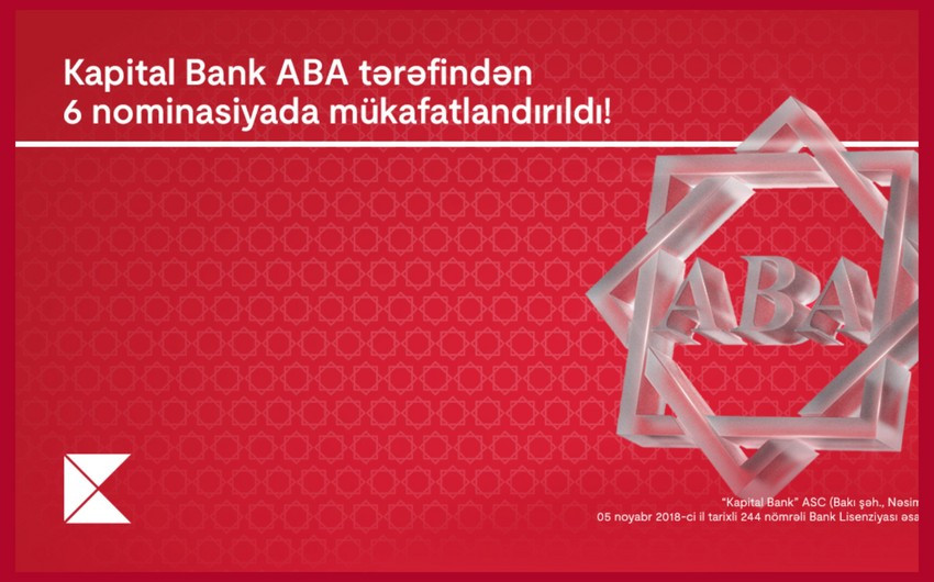 "Azərbaycan Banklar Assosiasiyası" (ABA) İctimai Birliyinin təşkilatçılığı ilə ənənəvi “Bankçılıq Mükafatları – 2024” ün qalibləri müəyyən olunub və "Kapital Bank" ASC nominasiyada mükafat qazanıb.