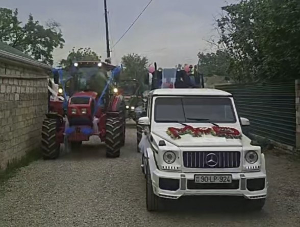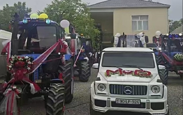 Ağdamda keçirilən toy mərasimi zamanı bəy qız evinə traktor karvanı ilə gedib.