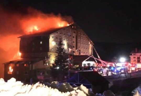Türkiyənin Bolu vilayətinin Kartalkaya dağ-xizək mərkəzinin hotelinin yanğından sonrakı vəziyyətini əks etdirən videogörüntü yayılıb.