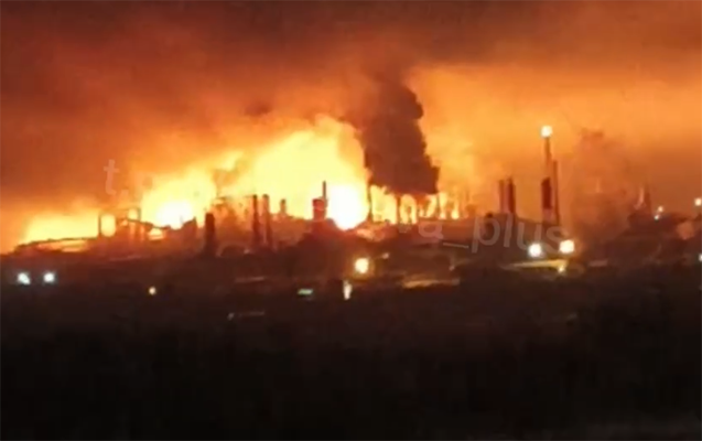 Bildirilib ki, PUA hücumu nəticəsində zavodda irimiqyaslı yanğın baş verib.