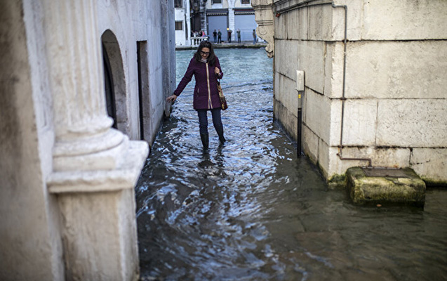İtaliyanın Venesiya şəhərində qabarma nəticəsində suyun səviyyəsi artıb.