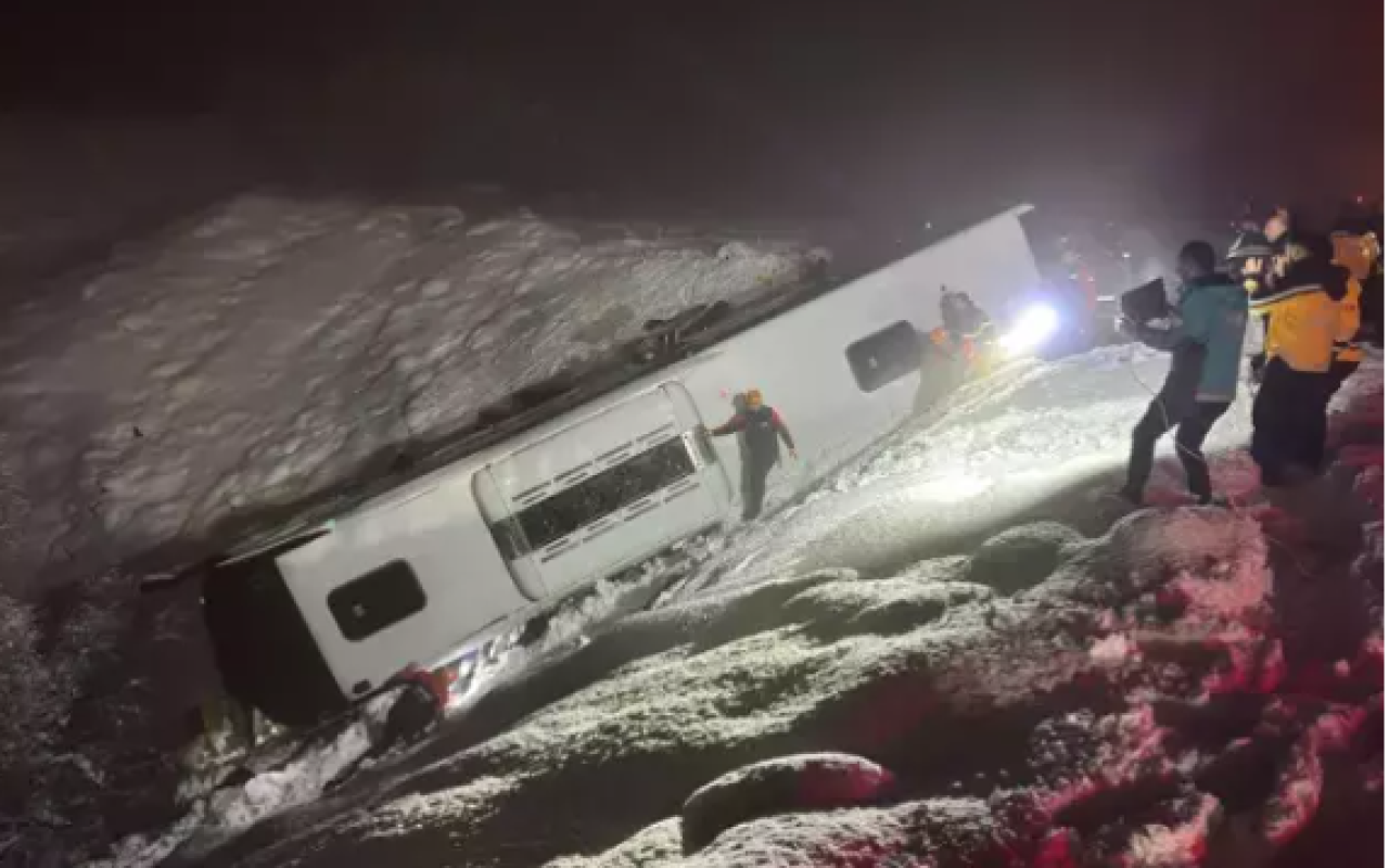 Türkiyənin Bingöl şəhərində sərnişin avtobusu aşıb.