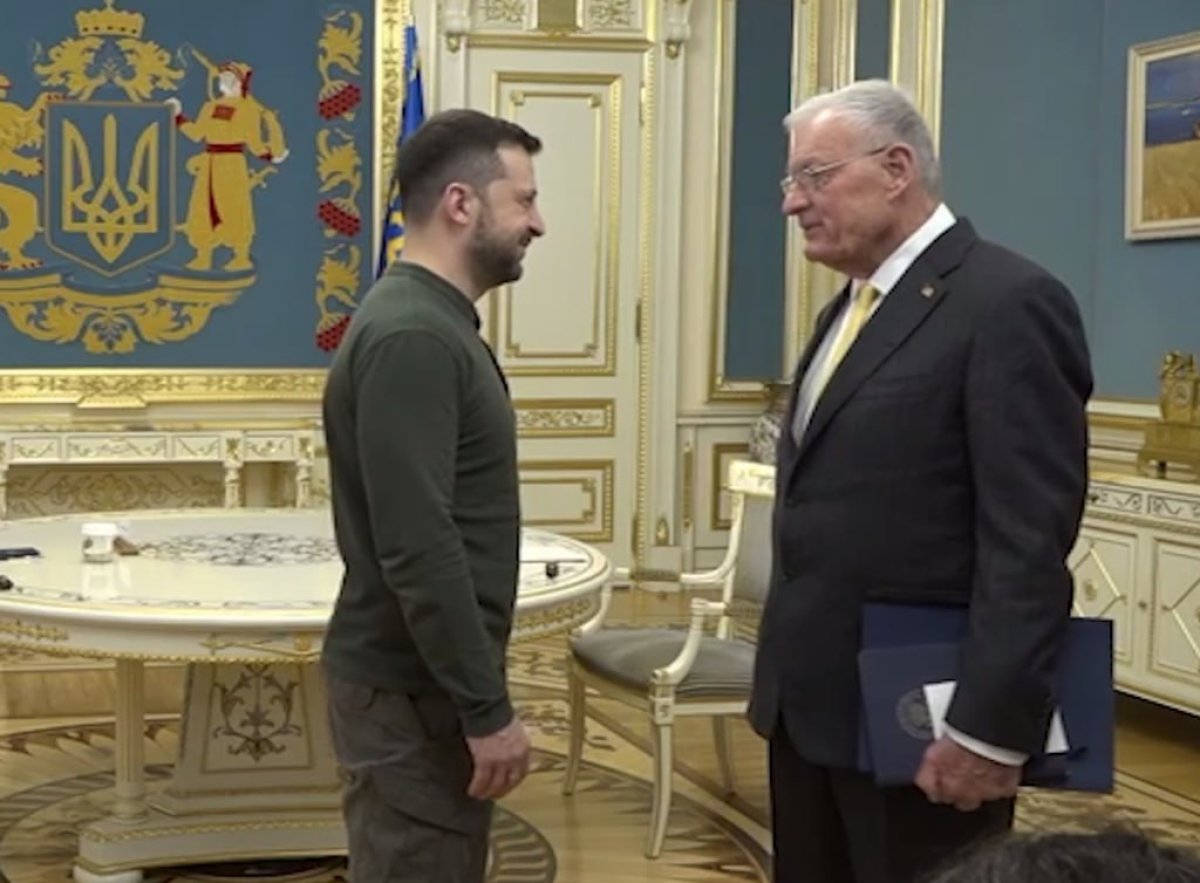 Görüşdən yayılan kadrlarda Kelloq Ukrayna liderinin kabinetinə daxil olur və onunla salamlaşır. Onlar dərhal jurnalistlərin yanında stolun qarşısında dayanaraq danışmağa başlayırlar.