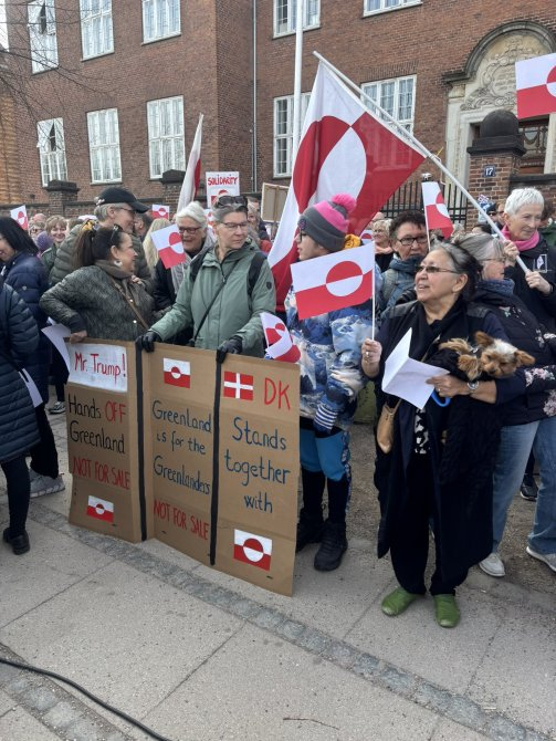 Məlumata görə, 800-1000-dək insan paytaxtdakı ABŞ səfirliyi qarşısında “Qrenlandiya Qrenlandiyalılara məxsusdur”, “Qrenlandiya satılmır” və “ABŞ, geri çəkil” şüarları ilə nümayişə toplaşıb.
