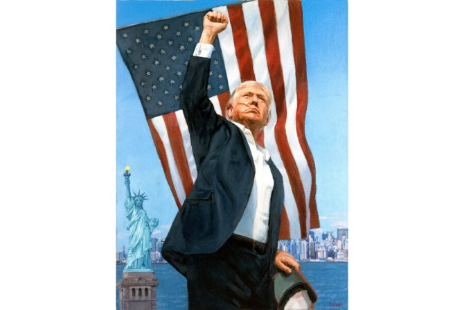 O, Trampın sui-qəsd zamanı çəkilən fotosunu Amerika bayrağının və Azadlıq Heykəlinin fonunda təsvir edib.