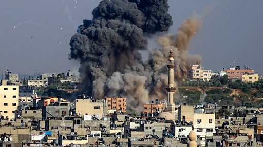 Fələstin tərəfinin dərc etdiyi kadrlarda partlayışdan sonra bir neçə hündürmərtəbəli binanın dağıldığı görünür. Havaya qalxan toz və tüstü ətrafı bürüyür. Dərhal yerində yanğın baş verir və insanların qışqırtıları eşidilir.