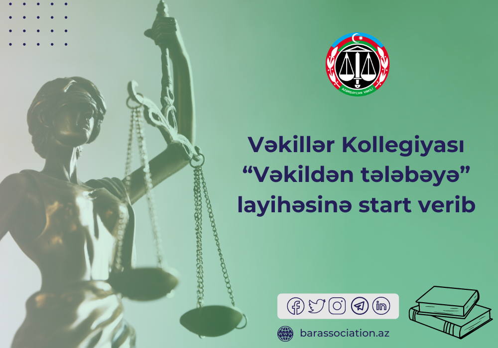 Vəkillər Kollegiyasının uğurlu layihələrindən hesab olunan “Vəkildən tələbəyə” layihəsi vəkillərin müvafiq sahələrdəki təcrübələrinin tələbələrə ötürmələrinə şərait yaradacaqdır.