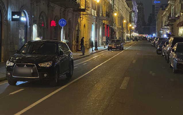 Görüntülərdən məlum olur ki, “Mitsubishi” və “Mercedes” markalı avtomobillər velosiped zolağının üzərində parklanıb.