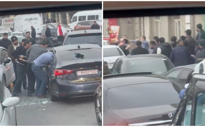 Bir qrup şəxs taxta sopalarla 99 BZ 500 dövlət qeydiyyat nişanlı “Chevrolet Malibu” markalı avtomobilin tıxacda olmasından istifadə edib ona hücum edib. Onlar maşının şüşələrini sındrıblar, sürücünü zorla yerə endirərək ona zərbələr endiriblər.